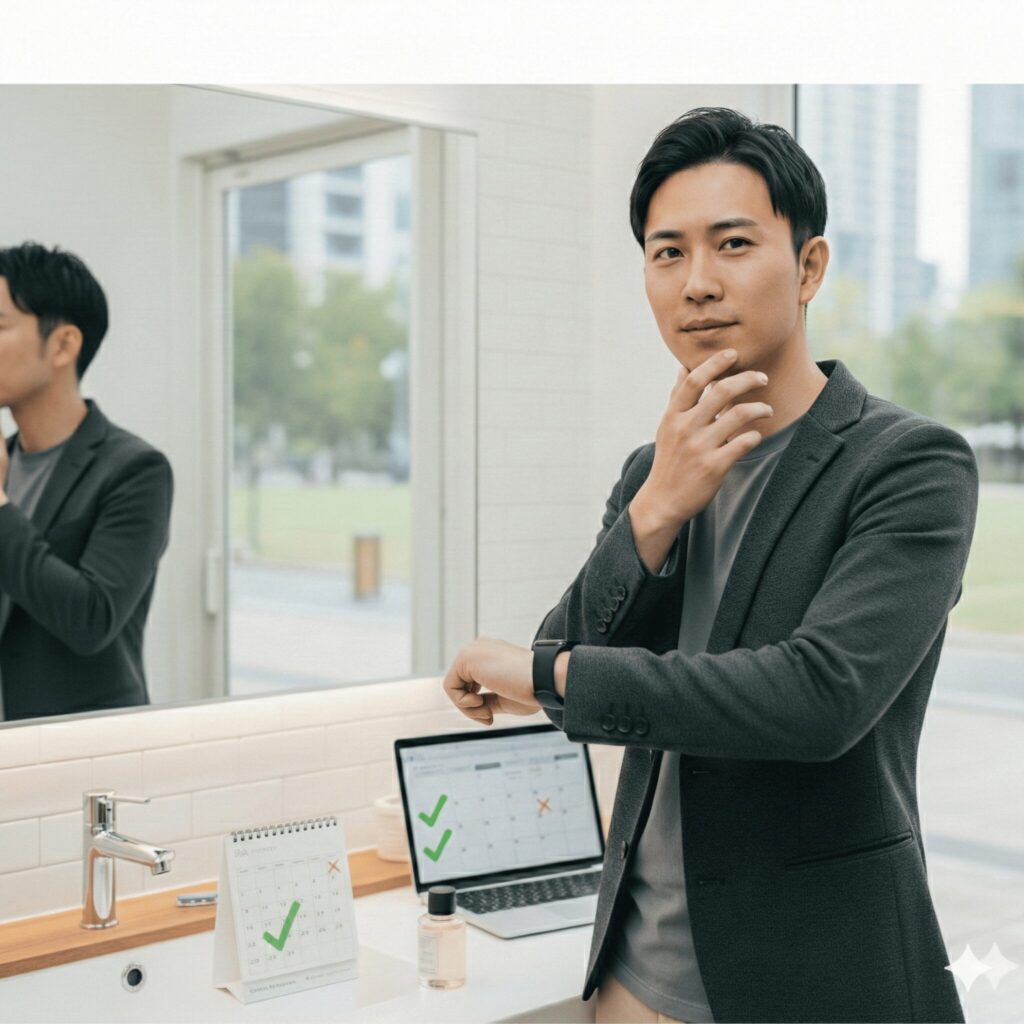 清潔感を毎日の努力で維持するのではなく、自然な状態として保ちやすくなることで、人前に出る場面でも余計な気疲れが減ります。仕事・プライベートを問わず、第一印象を安定させたい男性にとって、実感しやすいメリットです。